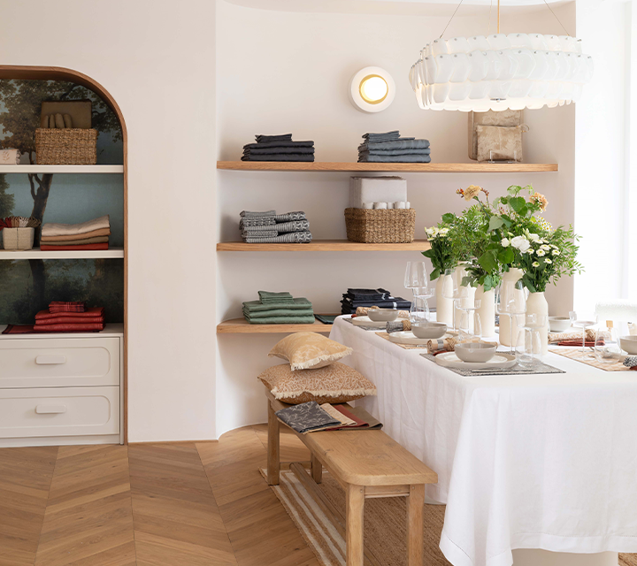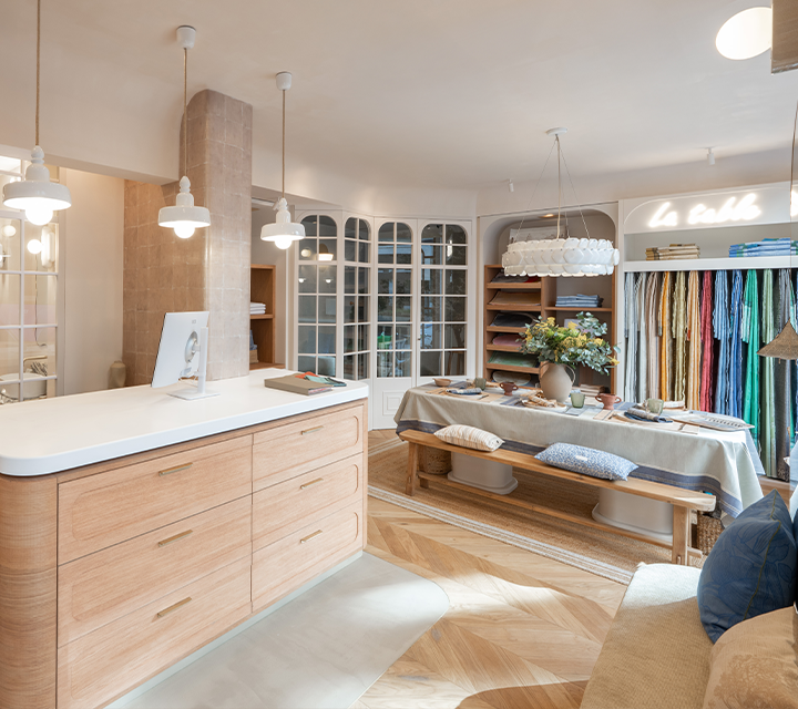 Designed as an open house, the Lyon boutique exudes a bright and warm atmosphere. Here, you can discover all of the Maison's worlds, including table linen, bath, bedroom, kitchen, and outdoor, presented in a refined setting that is conducive to discovery and inspiration. Volumes, textures, and colors come together to offer a contemporary vision of the art of linen.