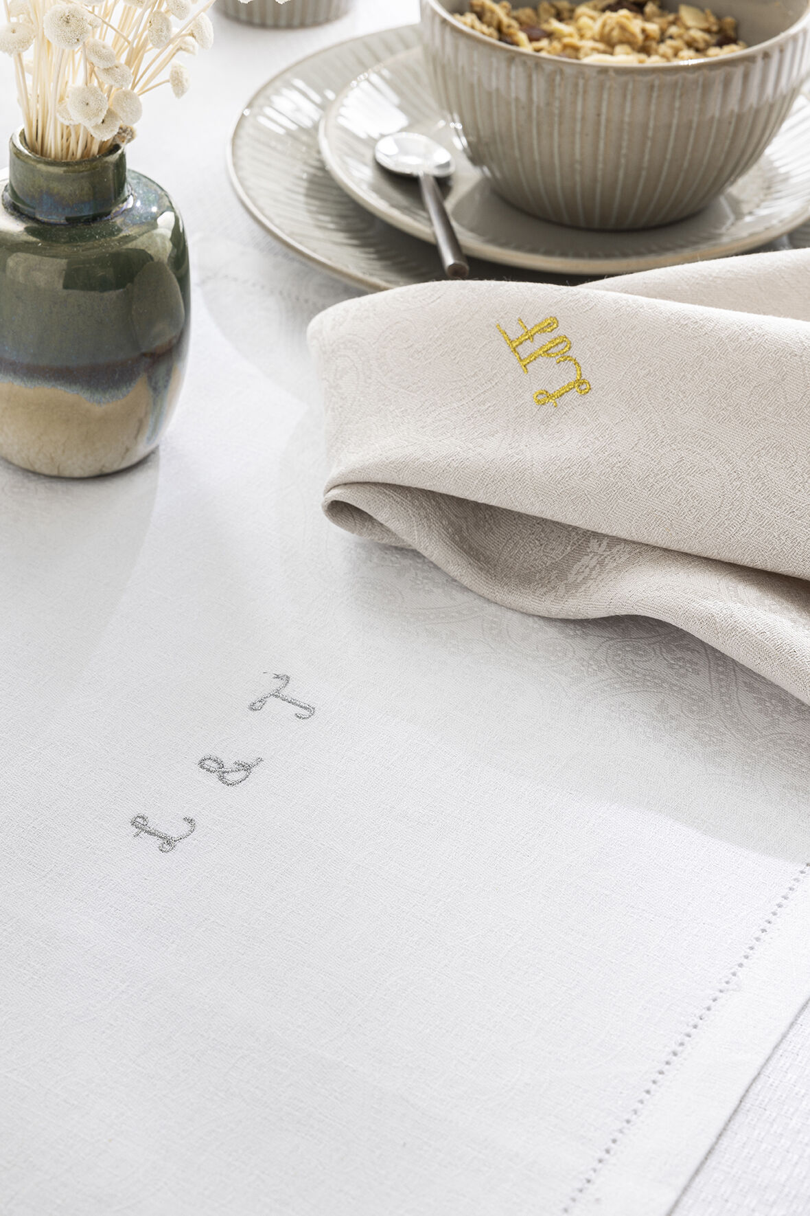 Pour perpétuer la tradition du linge de maison brodé nous avons intégré un atelier de broderie à notre manufacture de Gérardmer. Sous les mains expertes de notre brodeuse, vos noms et vos messages prendrons vie et rendront votre linge de maison unique.